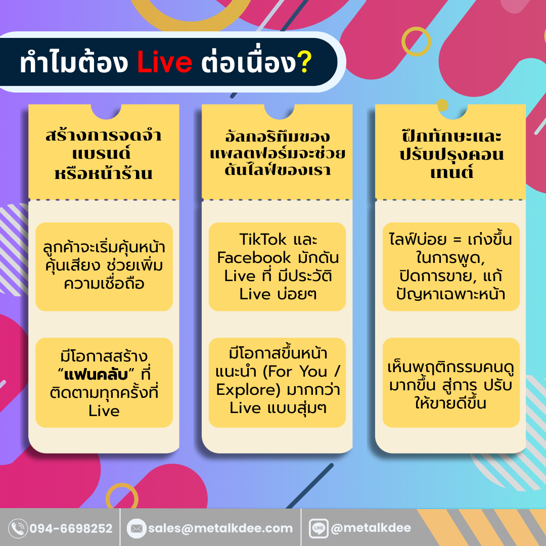 METALKDEE มี 3 เหตุผลหลักที่ ทำไมต้องไลฟ์สดต่อเนื่อง ดังนี้